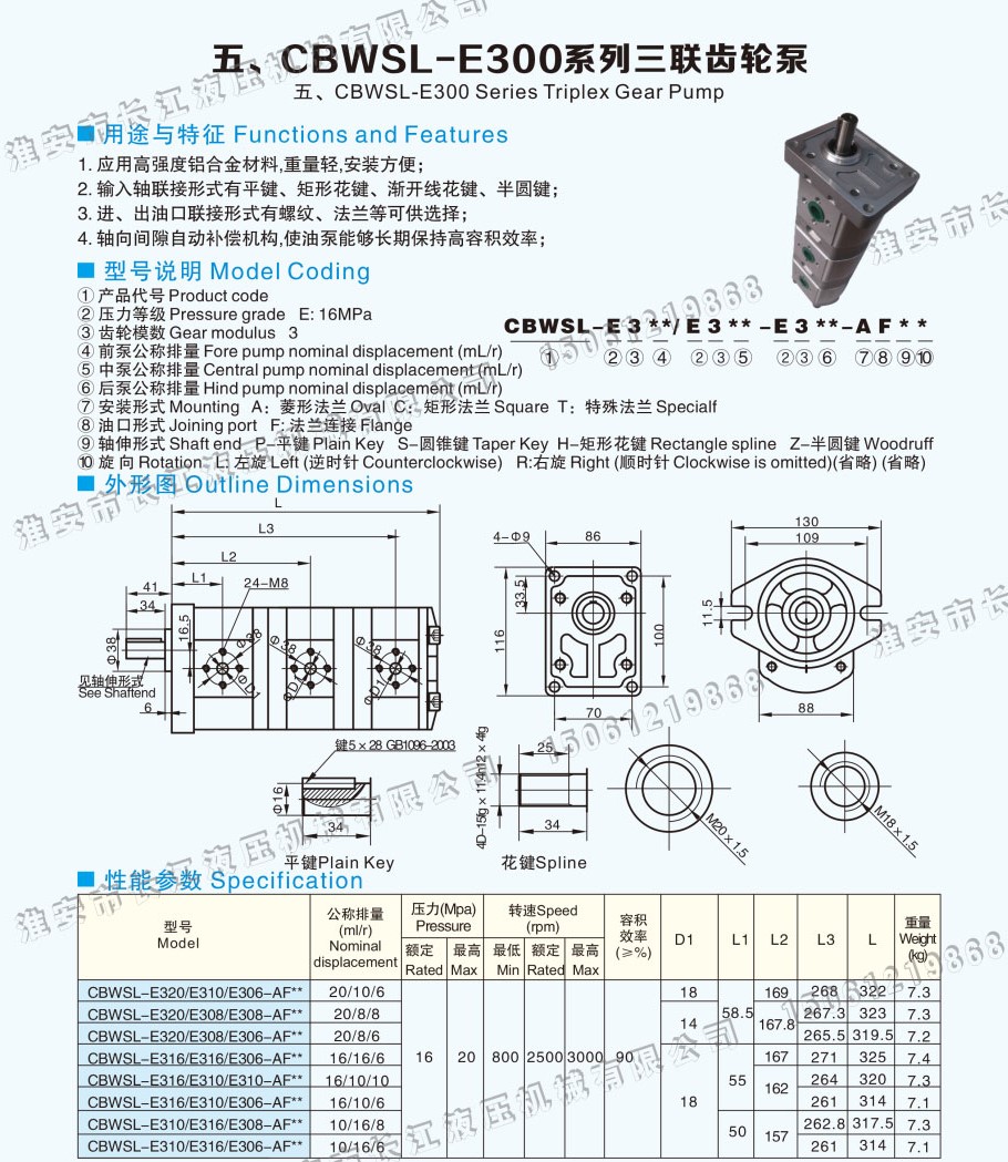 CBWSL-E300系列三聯(lián)齒輪泵